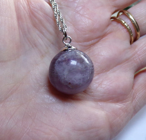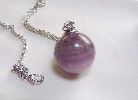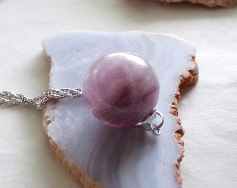 Purple Fluorite Banded Gemstone Crystal Ball Pendant Necklace