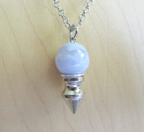 Blue Lace Agate Crystal Ball Spike Pendulum Pendant Necklace