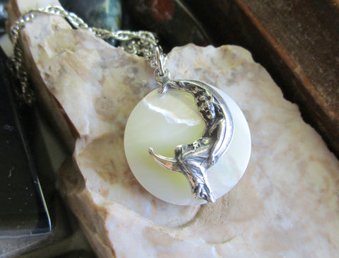 Mother of Pearl Moon Maiden Natural Pendant Necklace