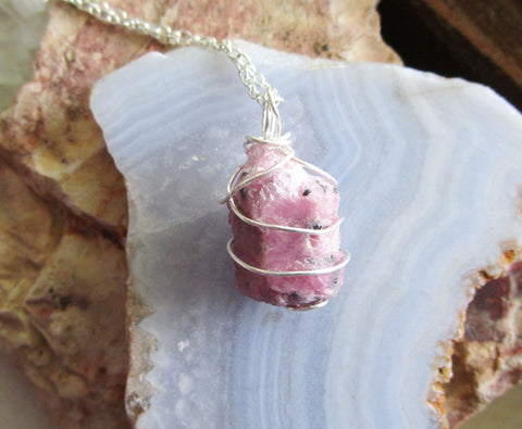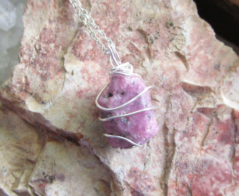 Pink Ruby Raw Natural Gemstone Crystal Pendant Necklace