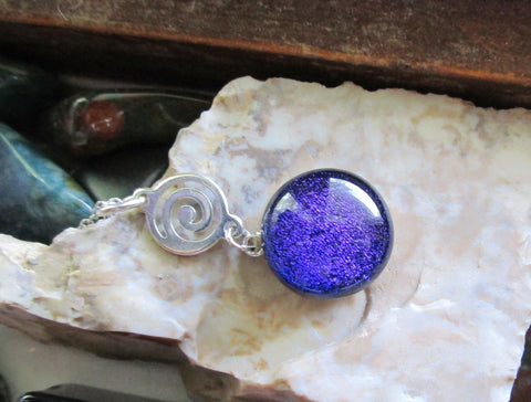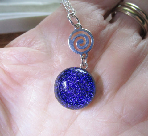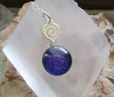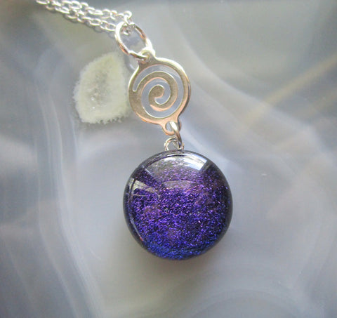 Purple Dichroic Twinkle Glass Silver Spiral Pendant Necklace